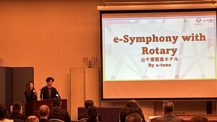 その後は「e-Symphony with Rotary」と冠して、会場と海外をつないだ合奏であるオンラインオーケストラに加え、ロータリアンの方々との参加型合奏を行いました。