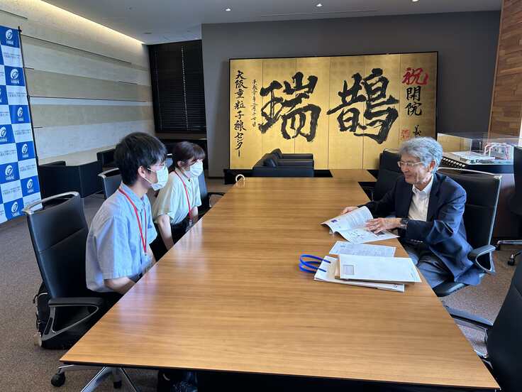 9/3(火)、大阪大学の前総長であり公益財団法 人大阪国際がん治療財団理事長の平野俊夫先 生にご寄付の御礼をお伝えするため、大阪重 粒子線センターにお伺いしました。