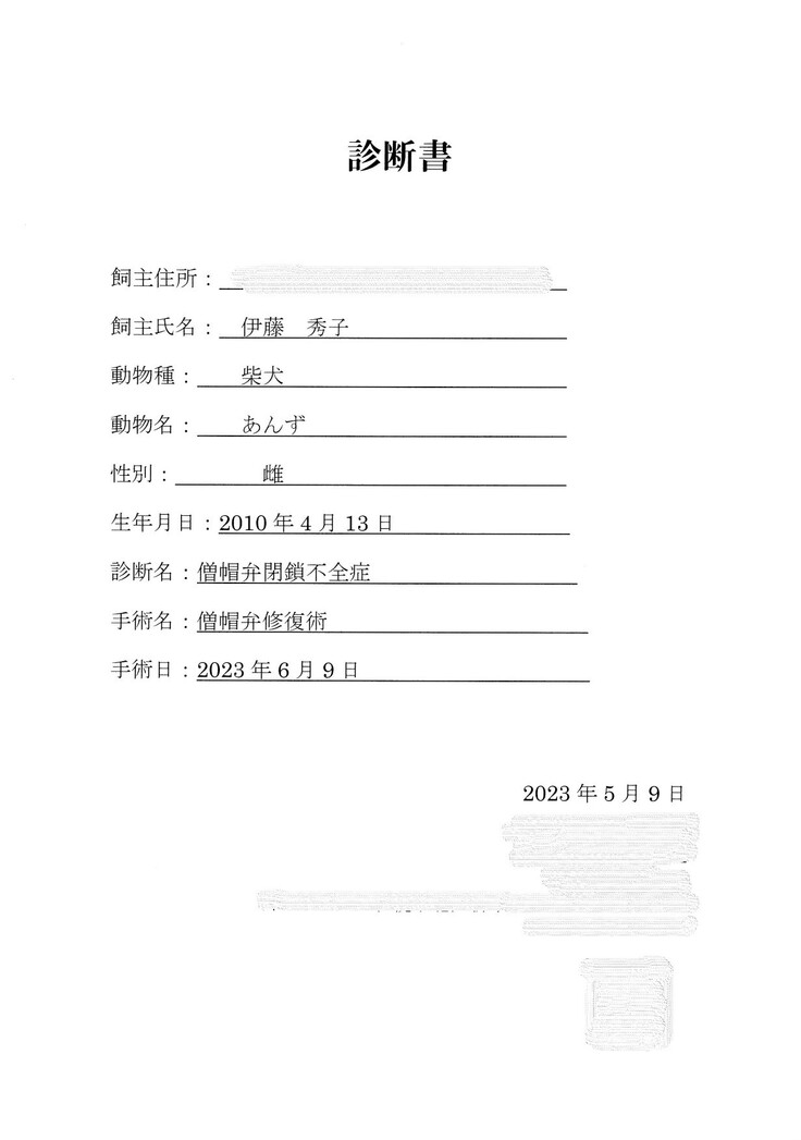 さらにこの日初めて病名が【僧帽弁閉鎖不全症】であることを告げられました。ネットで目にしてきたことのある病気でしたが、発症は小型犬が多いという情報と、あんずの症状は加齢のためであって欲しいという気持ちもあり信じがたい診断でした。