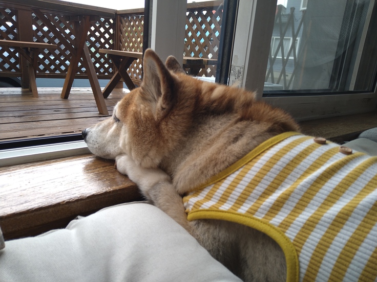 あんずは朝から何を考えながらお外を眺めているのやら…加齢からか昨年あたりより声をかけても反応が鈍く、今日も3回目の声かけでようやく 何!? って。