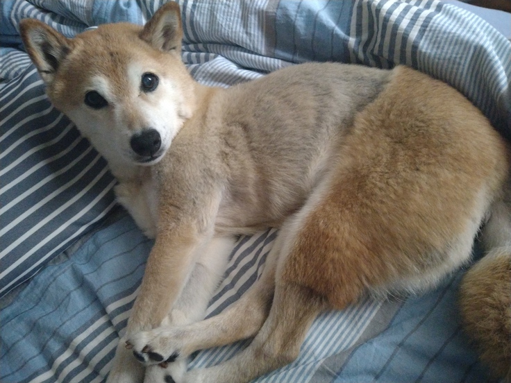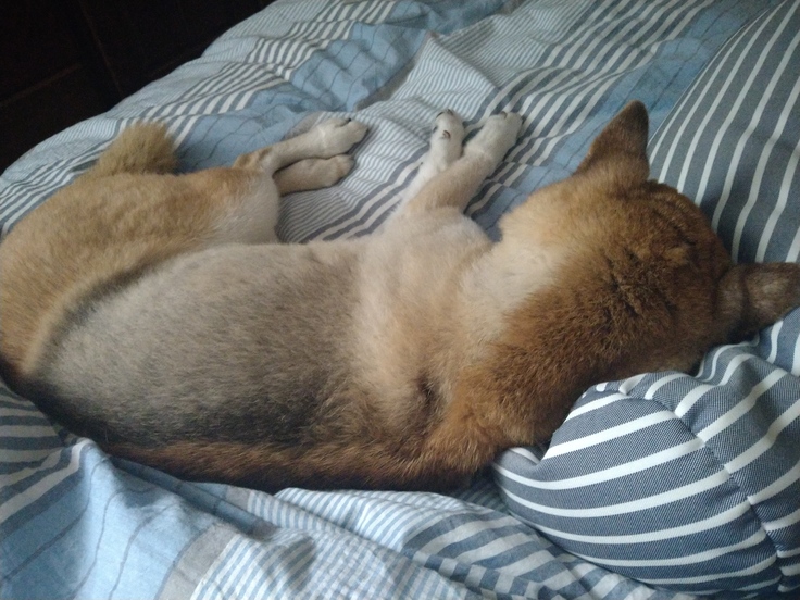 最近夏日の旭川でもさらさらで気持ちの良い朝がやって来ます。あんずも今朝はご覧の通り気持ち良さそ〜に寝ておりました。