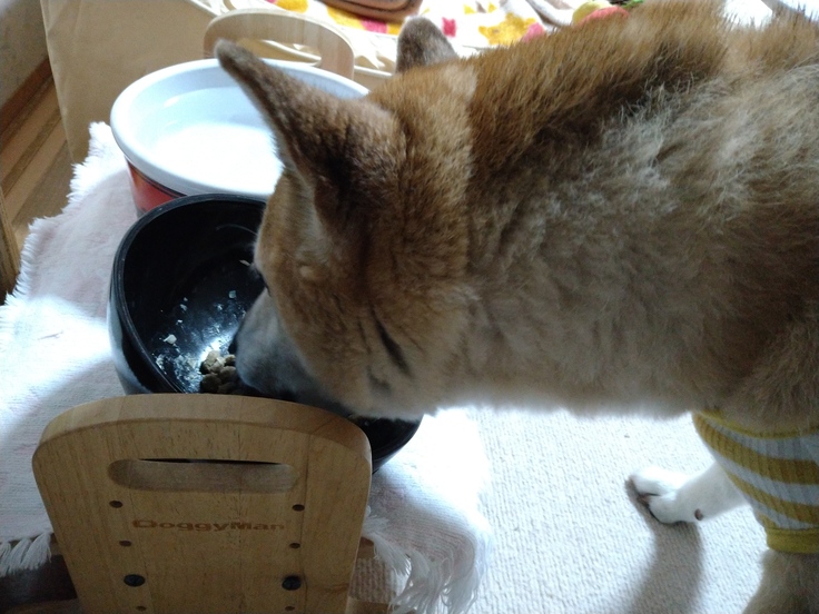 ドライフードに鶏肉と野菜をボイルしたスープと具を乗せて少し柔らかめにして食べさせています。調子良く食べていても突然あと残り数粒というところで食べるのを止めてしまうのが不思議でいつも理由を聞いてみたいと思ってしまいます。人間の子供でしたら「最後まで残さず食べなさい!!」なのですが…。それでも次の検診ではまた体重も増えてきていい感じと褒めてもらえると嬉しいです。