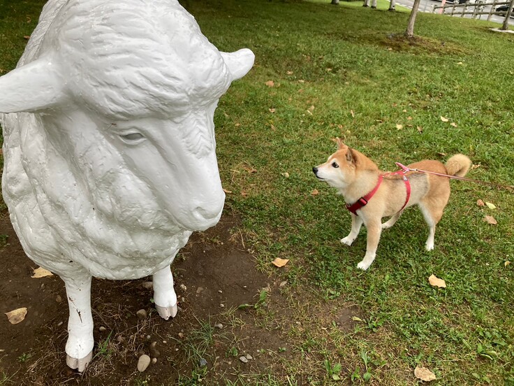 帰りに寄ったサービスエリアで遭遇しました羊に吠えてみたりビビってみたりしていましたので夢に出てきているかもしれません。每日お薬も飲めていますし、そこそこご飯も食べられていますし、昨日も「体重増えたな…」と先生に言われましたし…羊に負けない日もやってきますね。