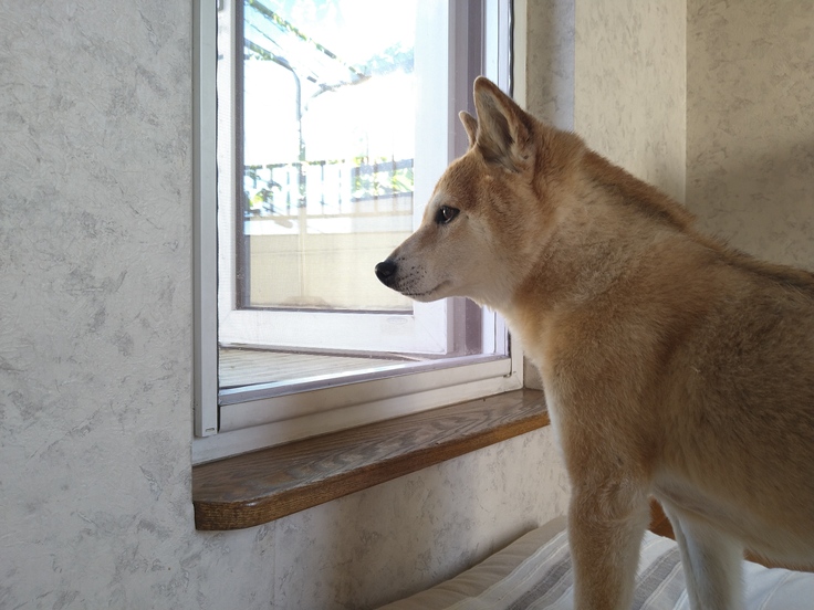 朝晩すっかり秋風です。朝方もバルコニーの出入口から入ってくる風…というよりは臭いを確認しているあんずです。