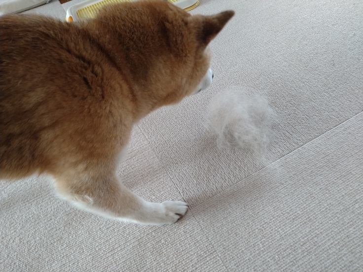 換毛期はブラッシングのたびにレジ袋1袋の毛であんずがもうひとり出来そうな勢いですが、今の時期はこれだけです。しかも半身は毛がありませんのでさらに半減です。このブラッシングで少しスッキリしたのか、この後ご飯を3分の2ほど食べてくれました。手術前に先生から「何でも良いのでとにかく食べて体力をつけさせてあげるように」と言われましたが、人も同じで食べることは一番大切です。