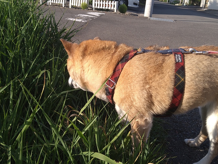 朝晩の気温も10℃台になり抱っこん歩も汗をかくことがなくなりました。毛も生え揃ってきましたあんずにもちょうど良い季節です。ひと休みをすると草むらに行きたがりしばらくの間動けません。沢山の匂いで脳に刺激を与えてボケ防止をさせてあげたいところですが、既に最近は加齢の症状も出てきておりお母さんと競い合っている感じです。