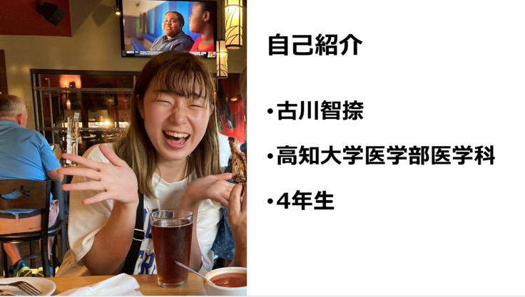はじめまして!高知大学医学部4年生の古川智捺です。地方大学の情報格差や医学部の閉鎖空間を打破したい!と思い、普段イベントを開いたり、医療系企業でインターンシップを行ったりしています。