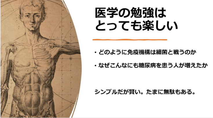 私は医学の勉強が大好きです。なぜなら医学はものすごく面白いからです。