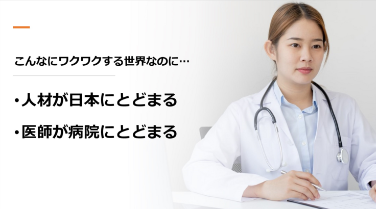 また、この留学は閉鎖的な医療の世界を変えるための第一歩でもあります。こんなにもワクワクして面白い医療の世界なのに、とても閉鎖的で他業界が参入しにくいという課題があります。