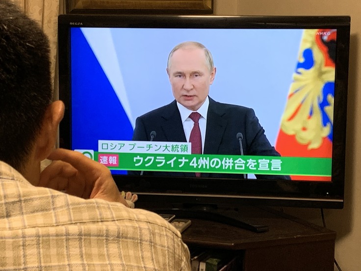 先日お会いしたご夫婦は、ドネツク州の激戦地・マウリポリの出身です。ロシアが実施した住民投票について、日本のテレビ局の取材を受けたそうです。わざわざスマホを取り出して、その映像をみせてくれました。奥さんが「軍に銃口を突き付けられながら実施した住民投票は有効ではない」とはっきりと言い切っていました。
