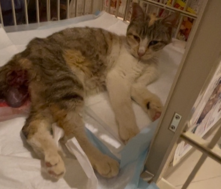 ママ猫さんは、人に慣れているため、このまま保護に切り替え、1ヶ月間は療養することになりました。