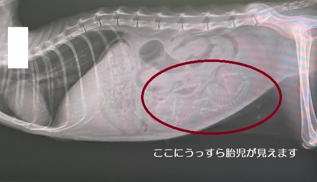 レントゲンの結果、子宮内に胎児が一匹取り残されていることが判明しました。