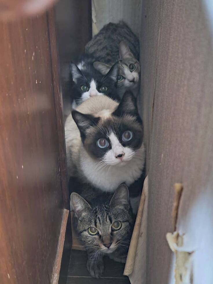 お隣さんがお一人暮らしの高齢者の方で、その方が救急車で搬送され、入院されたが、屋内に6匹の猫たちが取り残されている、という連絡でした。