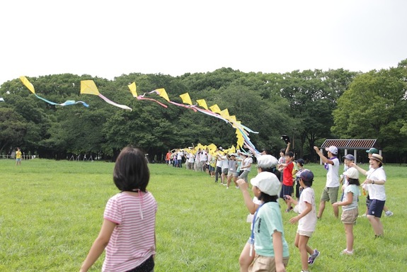 写真は2012年夏に東京で開催した連凧ワークショップ。