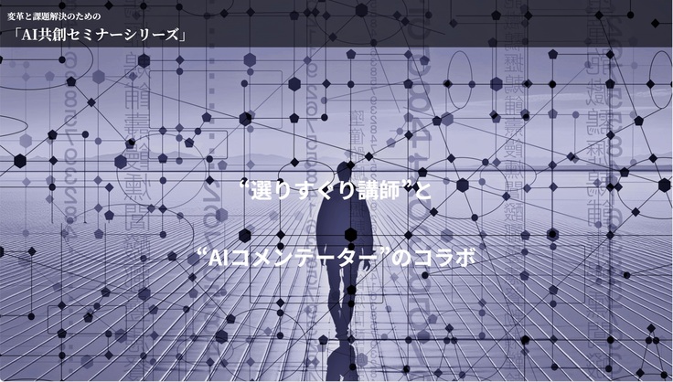 「自律人材アカデミー」の事業として、変革と課題解決のための「AI共創セミナーシリーズ」を発案しました。日本の様々な課題について語り尽くし、議論し尽くすようなセミナー・シリーズを企画・実施し、セミナーでは生成AIチャットボットをコメンテーターとして活用するものです。