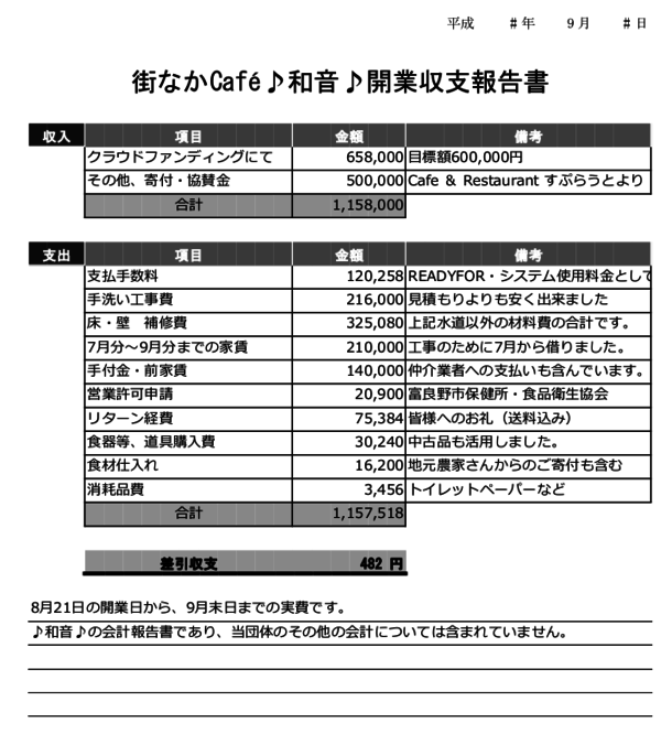 ♪和音♪の開業に際してご支援を頂きました皆様のお金のご入金が確認できるまでに、お9月の末日まで時間が必要でした。