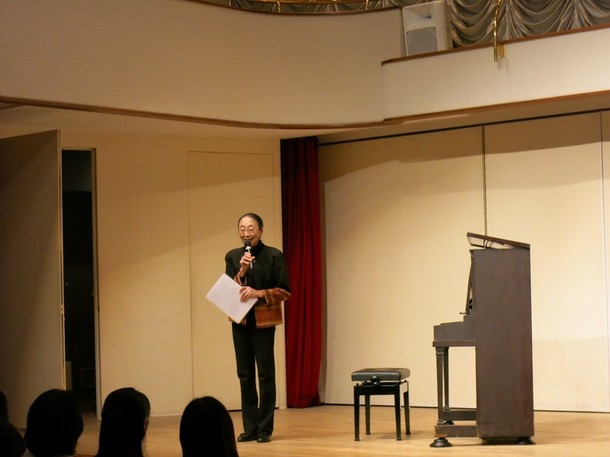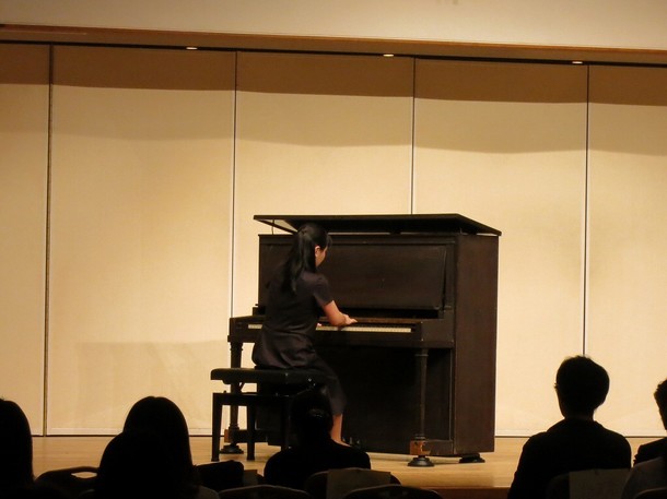 後半の部では、広島大学で音楽を学んでいる大学生2人と愛知県立芸術大学から来てくれた大学生たち1組による演奏が行われました。明子さんが好きだったというショパンを演奏した大学生もいました。愛知県立芸術大学の皆さんは、明子さんのピアノとは異なりますが、別の被爆ピアノを題材とした朗読作品を披露してくれました。