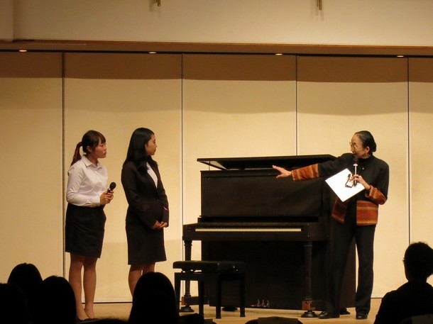 前半の部と後半の部の間では、スタッフによる戦時下の若者についての解説や、一般社団法人HOPEプロジェクト代表の二口とみゑさんから元のピアノの持ち主であり原爆によって亡くなった河本明子さんについてお話していただきました。お話の後、私たちスタッフの方から「ピアノを管理するうえで気をつけていることは何ですか?」等いくつかインタビューをさせていただきました。