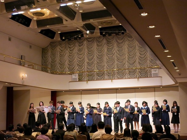 プログラムの最後には、出演者・スタッフ全員でゆずの「Hey和」を合唱しました。またプログラムと一緒に配った歌詞カードを見てもらい、会場の皆様にも一緒に歌っていただきました。