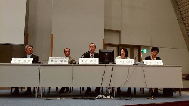28日にはシンポジウムを開催し、約400名の来場でした。京都府立医科大学の水野敏樹教授の基調講演「認知症と美術」に始まり、日本臨床美術協会の蜂谷和郎先生が臨床美術のアプローチについて話され、続いてフルイミエコが京都府立医科大学神経内科の講座報告を行い、介護家族である岩本みどり氏が介護者にとって臨床美術の魅力を語りました。来場者は作品展を見て興味を持ちシンポジウムに参加したという方もあれば、シンポジウムを聞いてから最終日にあらためて作品展を見に来たという方もあり、ふたつの取り組みが相乗的に働き、全体として認知症ケアとしての臨床美術に関心を高める結果となりました。