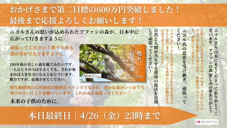 皆さんのおチカラにより第二目標600万円突破が叶いました!本当にありがとうございます!!