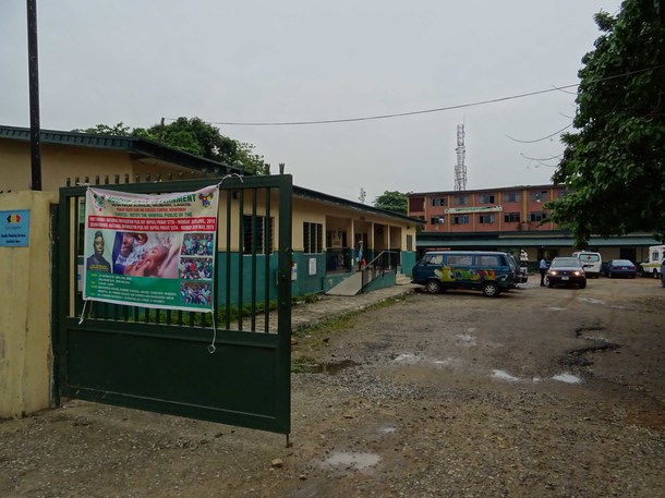 まずは外から。パームアベニュー保健センターはラゴス州の中のムシン地区という行政地区の中心地に位置しますので、舗装された通りに面しています。この通りがパームアベニューと呼ばれています。