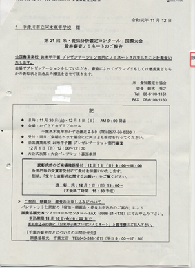大会は11月30日、12月1日に千葉県木更津市にて開催されますが、最終審査に残った学校には事前に通知が来るようになっています。