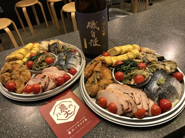 前菜、おつまみ、合図地鶏のネギソース、お漬物、ビール、焼酎、地酒が飲み放題! すべて全国各地から集結した素材で調理してます。