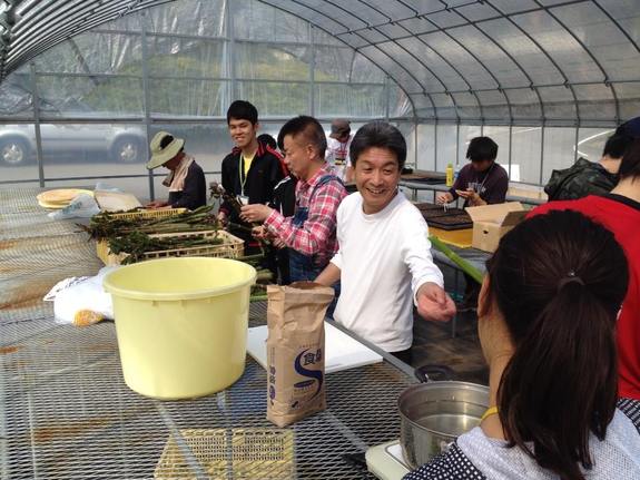(特産品のイタドリの塩漬け製作の様子)