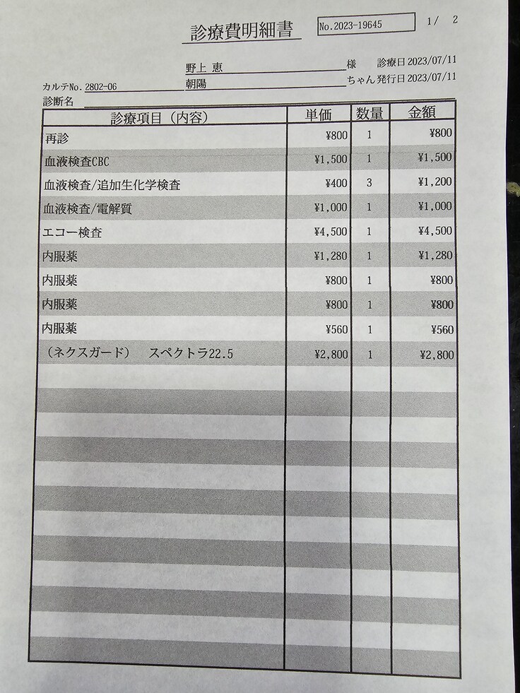 退院後の診察費の見積書がありませんが、一度通院するだけでも平均的に1万5000円位かかっていますので、肥大が収縮するまでにかかる費用も変わってきます。