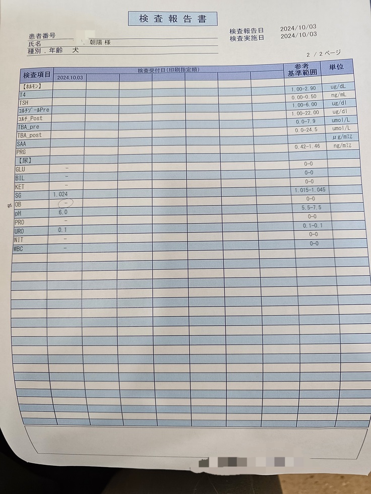 エコー検査も全てして頂いたのですが、膀胱、腎臓両方共に石もなく、綺麗な状態だそうです。