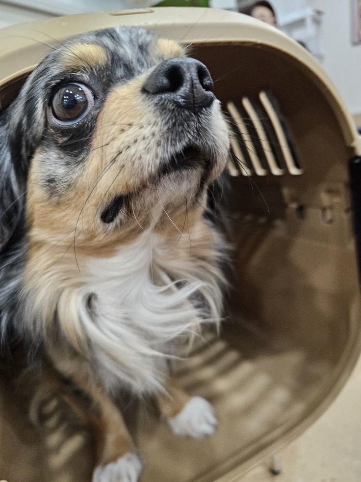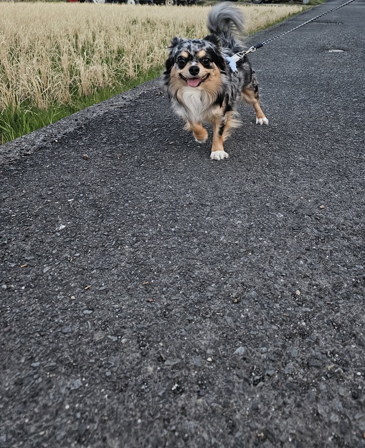いつも病院での朝陽ばかりですので、お散歩での朝陽も載せてみました🐾