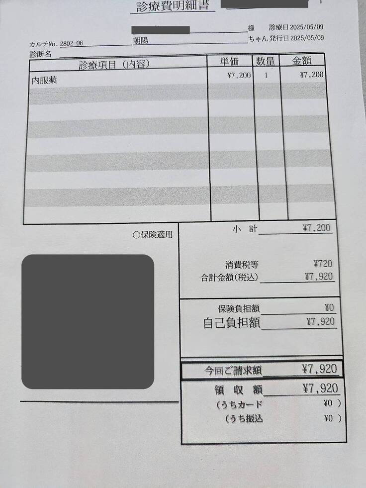ご支援の中からお薬の費用を出ささせて頂きました。