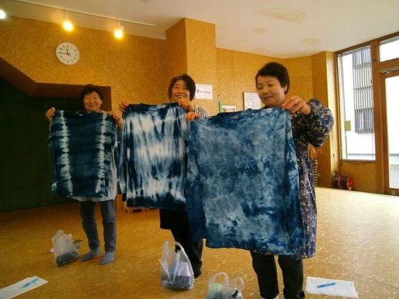 その後、これまで藍染教室は月に2回、7ヶ月間にわたり開催されました。参加者の皆さんからは 「気仙沼の復興に少しでも役立てると思うと、楽しみです」 「藍染の藍の色は気仙沼の海の色のようです」 と嬉しい声をたくさんいただきました。