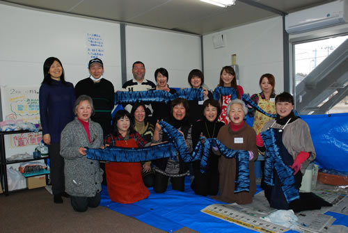 その後、4ヶ月の準備期間を経て、「気仙沼工房・藍」がオープンしました。その間、全ての藍染め教室に一度も欠席することなく参加した女性、そして彼女とともに立上準備期間も染めの技術向上のために努力をした女性2人は現在の 「藍染教室」 の講師となっています。自らが家を失い、家族を失った被災者である彼女たちは、まもなく 「気仙沼工房・藍」 の担い手として再スタートします。
