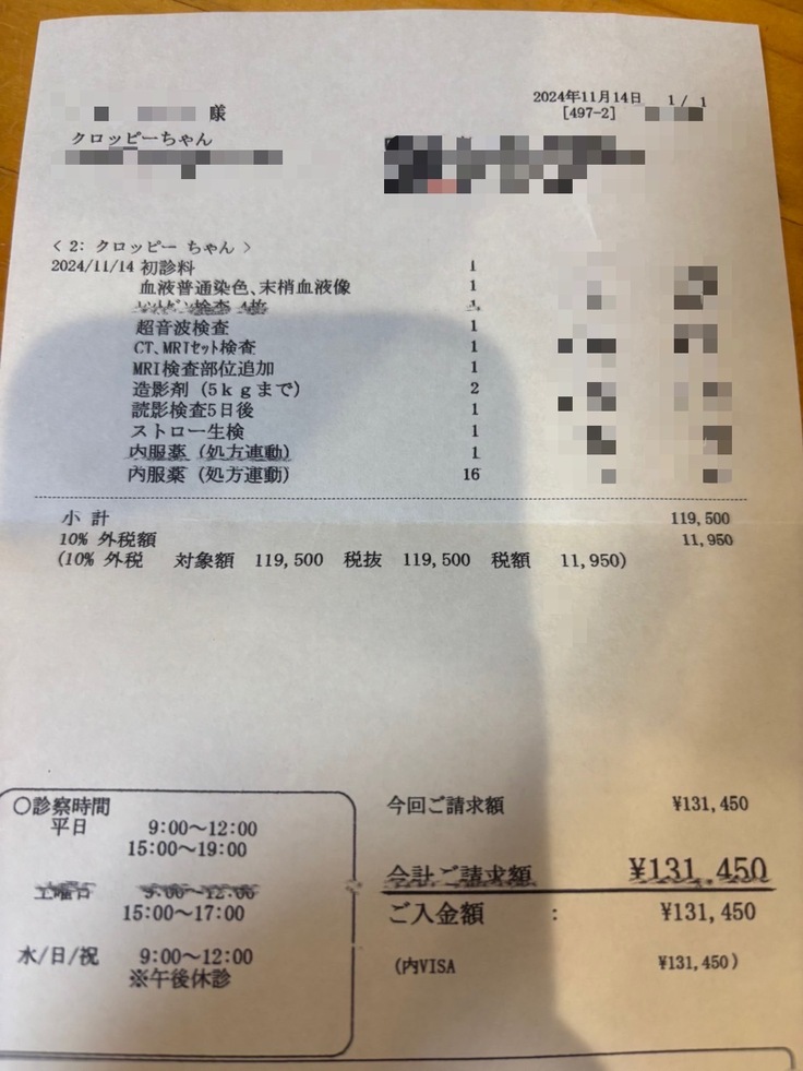 検査結果は後日になりますが、クロッピー、MRI検査頑張りました。