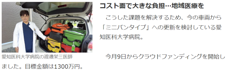 メ~テレ東海地方のニュース:「活動を知り仲間になって欲しい」ドクターカー更新に“クラファン”開始 愛知医科大学病院