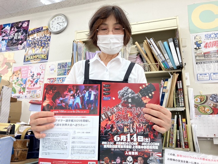 そんな日置市では只今クラウドファウンディングのチラシを絶賛配布中で、エアギター開催のPRと共に熱いご声援をいただいております!!!