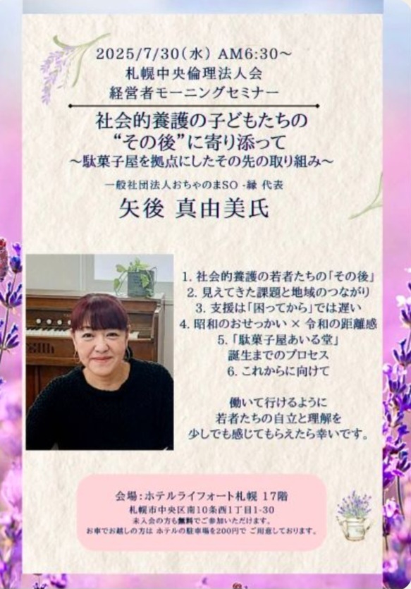 札幌中央倫理法人会の「経営者モーニングセミナー」にて、講話をさせていただくことになりました。