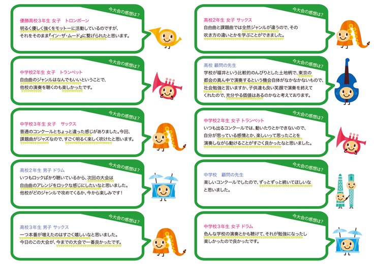 一度出場された学校が続けてエントリーされたり、学生ひとりひとりが生き生きと演奏する姿に事務局としてもやりがいを感じております。