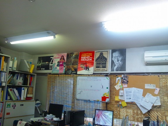 アジア女性資料センターのオリジナルグッツが壁にかかっていたりします。
