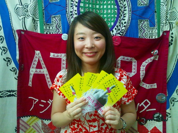 Fサインにリボンがかわいい、このチラシを置いてくださる、お店やスペースも募集します!アジア女性資料センターまでメールでお知らせください♪