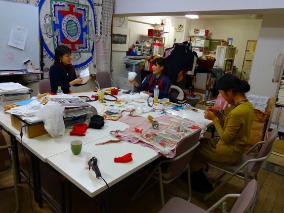 (おむつドレス用のヘッドピースを考えている奥の二人。