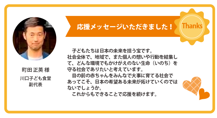 本プロジェクト最後の応援メッセージ:町田正英さんからいただいたメッセージをご紹介します!