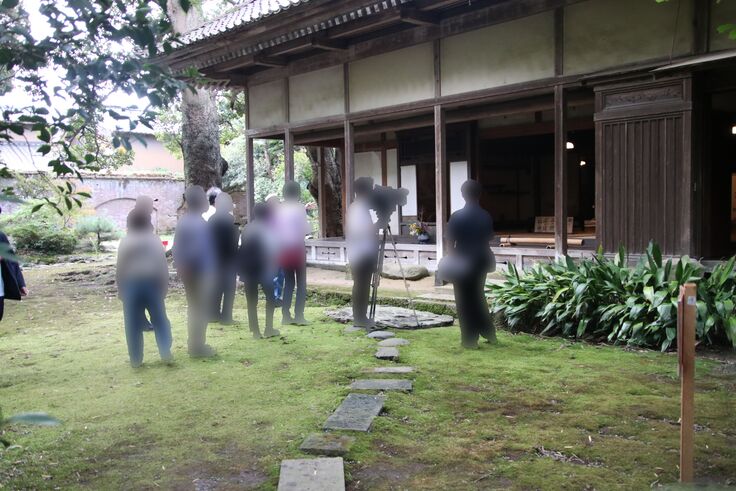 写真1|主屋前での見学とNHKの撮影の様子(人物はぼかし処理)