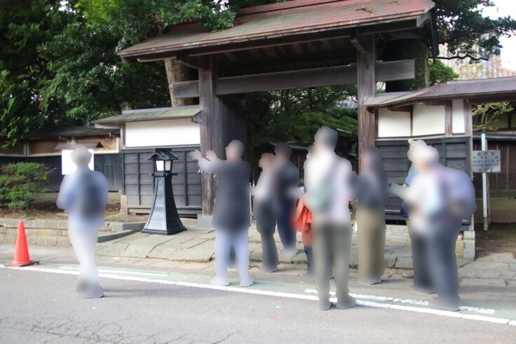 写真2|表門まわりでのご案内(人物はぼかし処理)