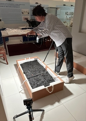 同博物館から資料をお借りするにあたって、博物館ならびに外部の専門家のご協力を得て、木彫板に彫り込まれた図像の精確なスケッチ(模写)と、展示図録用の写真撮影を行なってきました。その時の様子をお届けいたします。