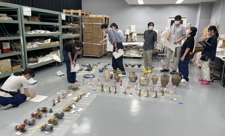 どの順番で並べたら見やすいか、どのような展示方法が適切か、展示品の時代背景や製作地など、モノが持つ情報も考慮しながら展示構成を組み立てていきます。