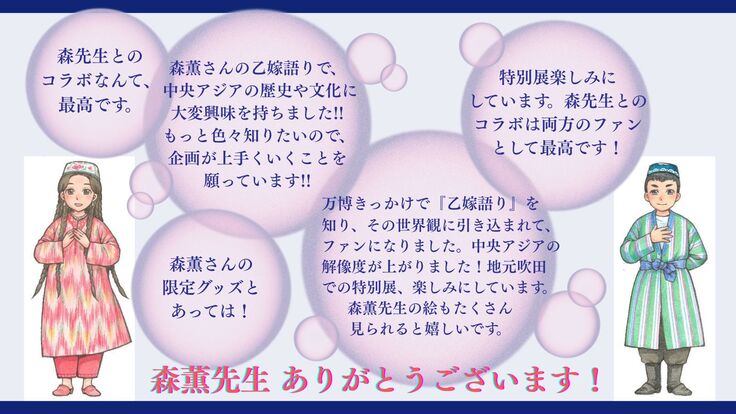 森薫先生に描き下ろしていただいたキャラクターたちは、特別展会場でも大活躍!