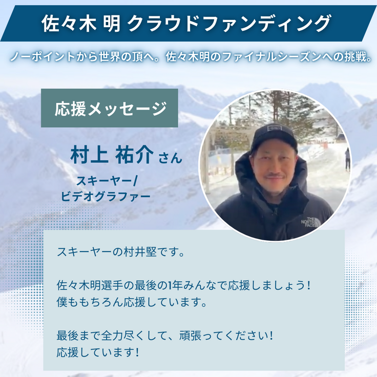 応援メッセージ:スキーヤー/ビデオグラファー 村上 祐介様